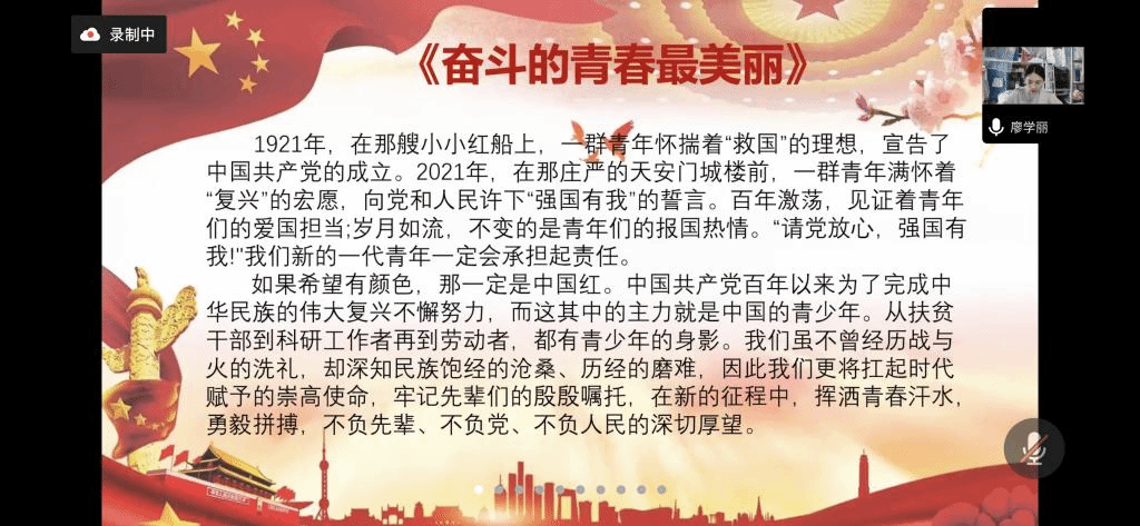 本次经典云共读活动采用“线上+线下”相结合的模式,通过声音、视频等方式唤醒最温暖的记忆,用朗读的方式传递青春的正能量。线下,朗读者在学校标志性的建筑前录制朗读视频,通过学校青年媒体中心微信公众号进行展播,和全校同学一起分享读书的喜悦。在“4.23世界读书日”当天,由校广播站在线上发起的社群读书会吸引了100余名同学共同参与,与圣贤同行,与经典为友。多位朗读者通过朗诵《奋斗的青春最美丽》、《生而逢盛世,青年当有为》、《党的好儿女》、《青春中国》等优秀经典作品节选片段,让同学们深刻感受到青年学子更应坚定理想信念,努力发奋学习,不负大好青春时光。