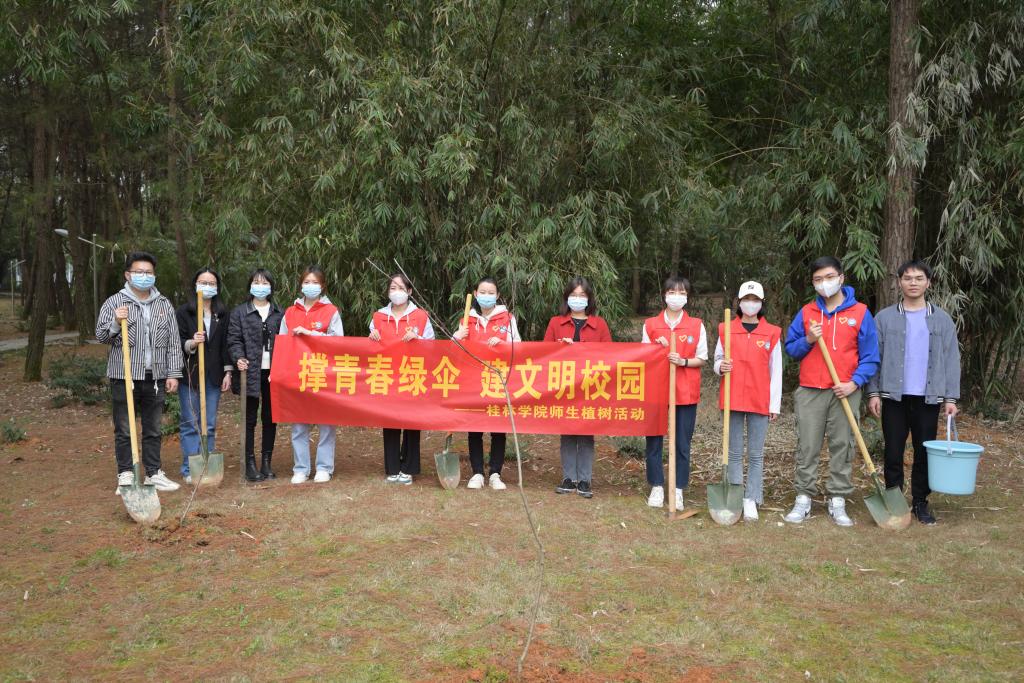 阳春三月,草木秀润。3月10日,在第44个植树节即将到来之际,为深入贯彻落实习近平生态文明思想,鼓励大学生投入到生态文明建设中,为创建“广西绿色学校”出一份力,更好的营造“雷锋月”活动氛围,校团委在校园内组织开展了以“撑青春绿伞,建文明校园”为主题的师生植树活动。