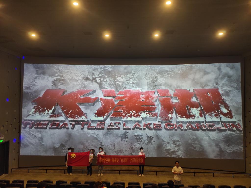 10月8日晚,为持续深入开展党史学习教育,进一步加强我校“青马班”学员的思想教育,弘扬爱国主义精神,校团委组织我校第一期校级“青马班”在桂林市雁山区金雁电影城开展观影活动,集中观看影片《长津湖》。通过观看红色电影《长津湖》,激发团员青年学习党史的热情。学生事务部副部长/校团委书记王瑞,校团委全体老师及第一期校级“青马班”全体成员约160人参加本次观影活动。
