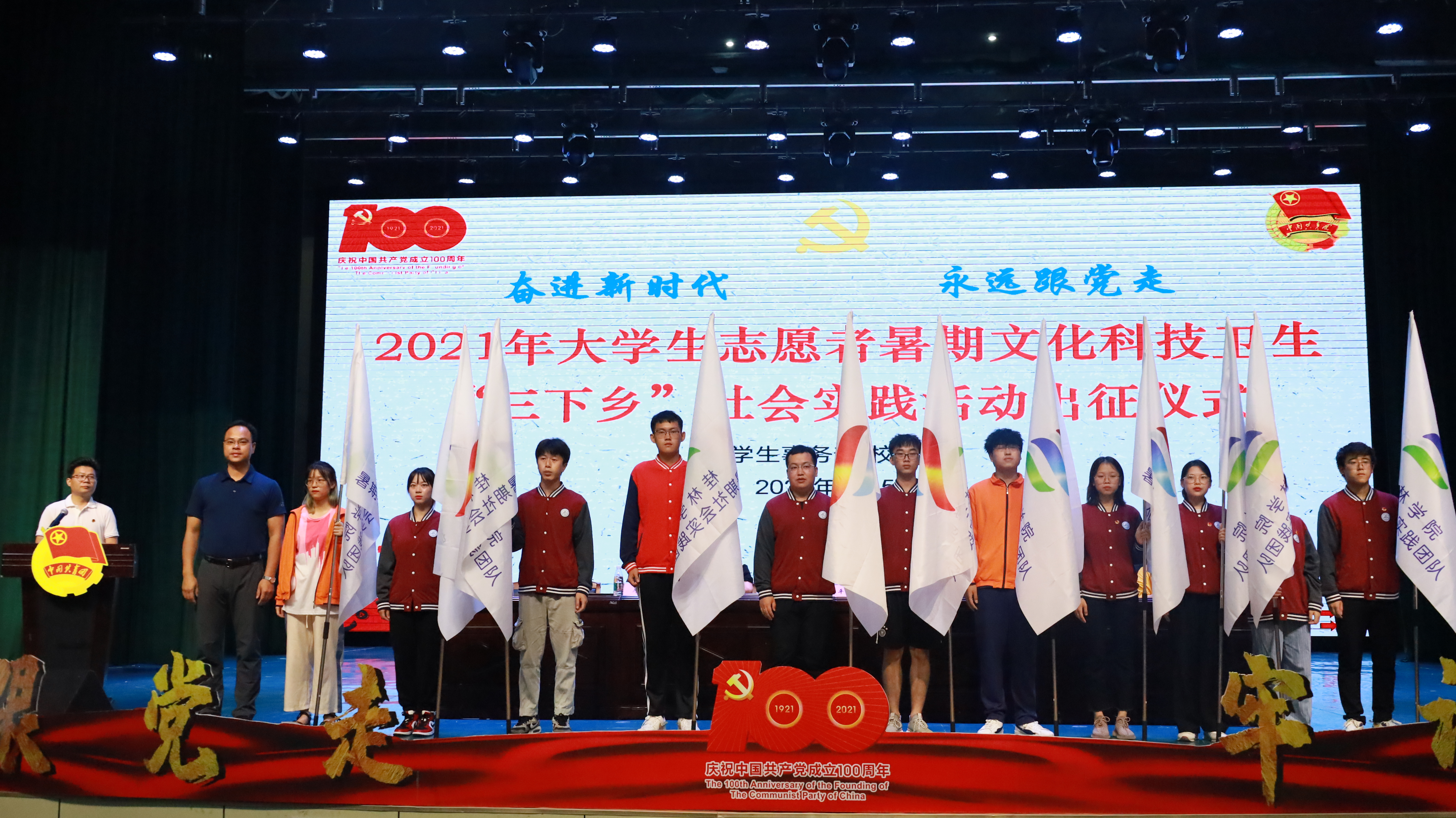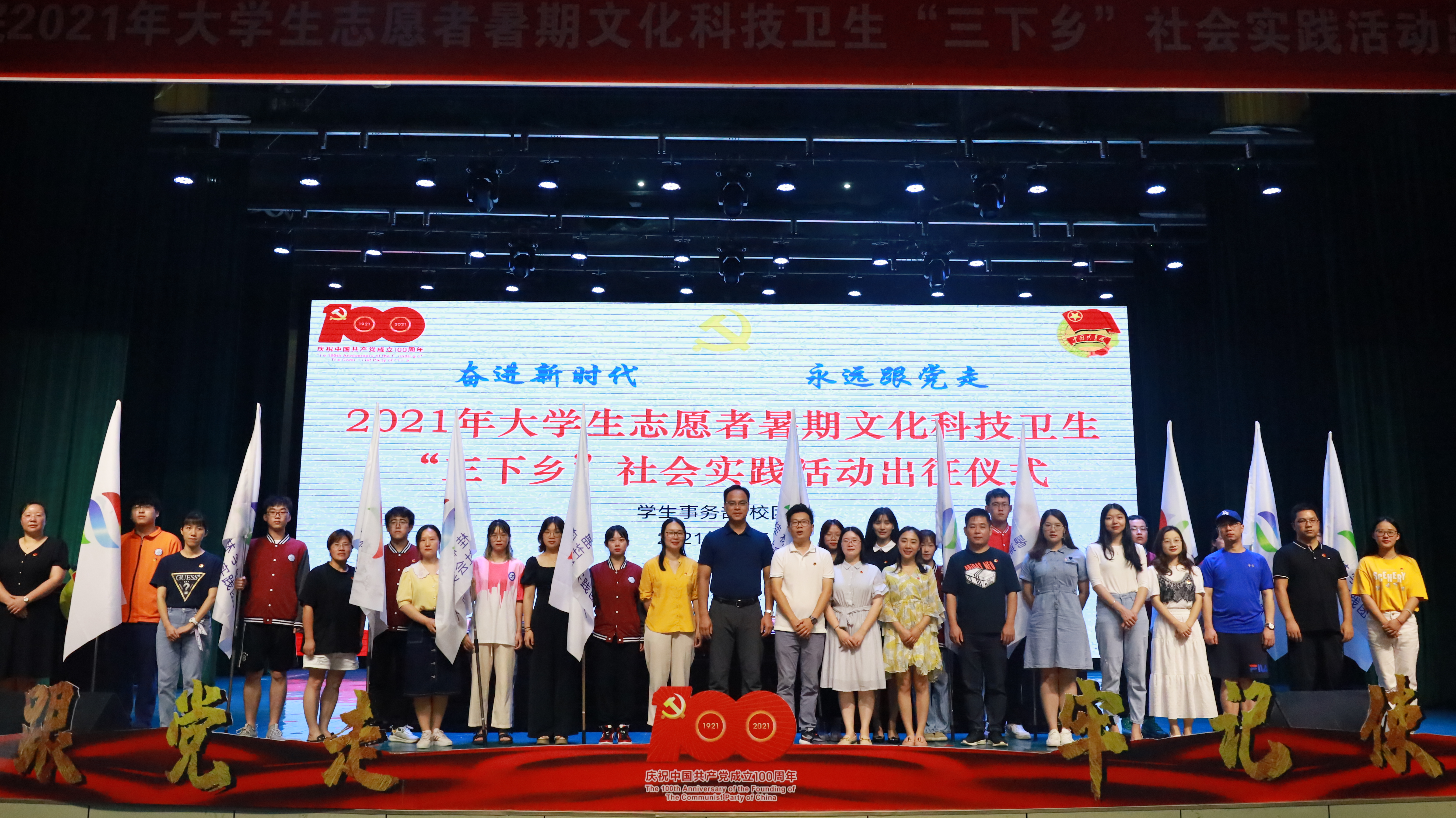 7月5日,我校2021年大学生志愿者暑假文化科技卫生“三下乡”社会实践活动出征仪式在弘善讲堂举行。校党委副书记、纪委书记、副校长邓志平,党政事务部副部长廖莎,学生事务部副部长林凤凤,学生事务部副部长/校团委书记王瑞、校团委老师以及各二级学院党总支副书记、团总支书记、副书记和各二级学院学生代表出席本次出征仪式。
