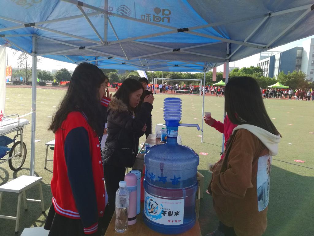 校红十字会志愿者为运动员提供饮用水