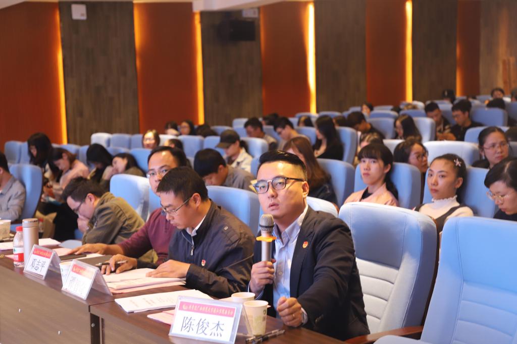大会最后,校团委书记陈俊杰做总结讲话。他首先对为大会辛勤付出的工作人员表示感谢。他表示,这次的社会实践成果喜人,上台参与展评的同学总体表现可圈可点,但也要看到其中的不足之处。希望各团队总结其中的经验教训,在明年的三下乡当中能够再创新的佳绩。