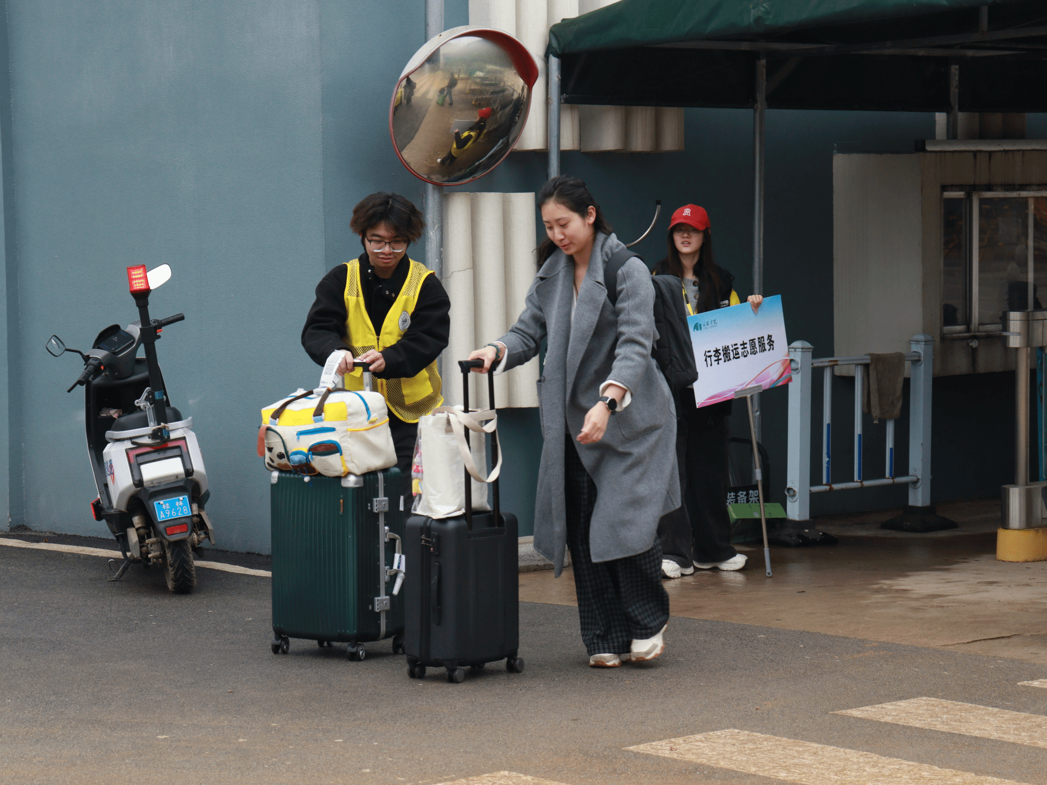 阳春三月,桂林学院迎来新学期学生返校高峰。为助力同学们顺利返校,校学生会开展“青春护航,雷锋同行”志愿活动,组织数十名志愿者分布于学校东门及各宿舍区,为返校同学提供行李搬运服务,以实际行动践行雷锋精神。
