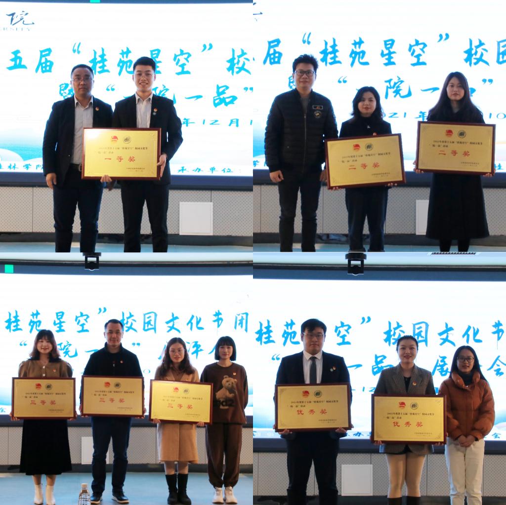 “一院一品”校园文化品牌活动共分为六大模块,分别为:思想素质养成类、传统文化类、至善文化类、文艺体育类、学术专业类、创业实践类。会上,八个学院依次展评:语言文学学院秉承“至善”理念,以“扬传统文化,承红色基因”为题,通过弘扬传统文化的方式,彰显了语言之“精”,红色基因之传承;传媒学院通过“传媒杯”系列活动的开展,贯彻、执行了“三走”活动的健康理念,使活动真正成为重要的教育活动形式;设计学院开展“学党史 感党恩 跟党走”主题绘画活动,以优秀的艺术作品讴歌党,赞美党带给我们的幸福生活,充分展现了青年学生积极向上的青春风采;体育与健康学院将服务全校师生为宗旨,通过开展“康复义诊、公益培训”活动,践行了“我为群众办实事”的精神;商贸与法律学院开展的“阳光沐童”法律讲堂进校园活动辐射范围大,覆盖面广,发挥了学科优势,促进了专业建设;经济与管理学院推出的品牌活动:传承红色基因培育时代新人依托——“桂北红色文化资源”开展大学生思想政治教育的探索与实践,活动秉承“学思结合,知行合一”的理念,传承桂北红色文化资源,增强大学生爱党爱国的家国情怀;教育与音乐学院举行了“青春技艺,放飞漓想”——第十二届文化艺术节暨专业技能大赛,旨在强化大学生的专业技能训练,也是对学院各专业教学水平的一次大检阅;理工学院开展“三字一话”活动,引导学生重视汉字文化,加强学生对教师技能的熟练度,培养学生的教师基本素质,为今后自身事业和发展奠定稳固的基础。本次展评中,语言文学学院获得一等奖;传媒学院、设计学院获得二等奖;体育与健康学院、商贸与法律学院、经济与管理学院获得三等奖;教育与音乐学院和理工学院获得优秀奖。