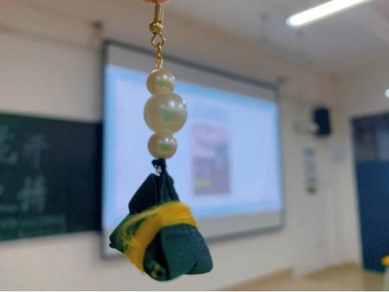 活动伊始,手工DIY环保协会麻学艳老师针对活动主题进行指导,她强调,农历五月初五是中华民族的传统节日“端午节”,身为新时代大学生应弘扬中华民族优秀传统文化和传统美德。积极践行社会主义核心价值观,进一步弘扬爱国主义精神。紧接着,张立陆同学讲解缠花粽子制作方法以及制作过程中需要注意的事宜等。活动的最后,各小组派代表讲解作品的制作理念。大家纷纷认为,作为青年学子,应不断追寻中华优秀传统文化,在实践中感受传统文化的魅力。