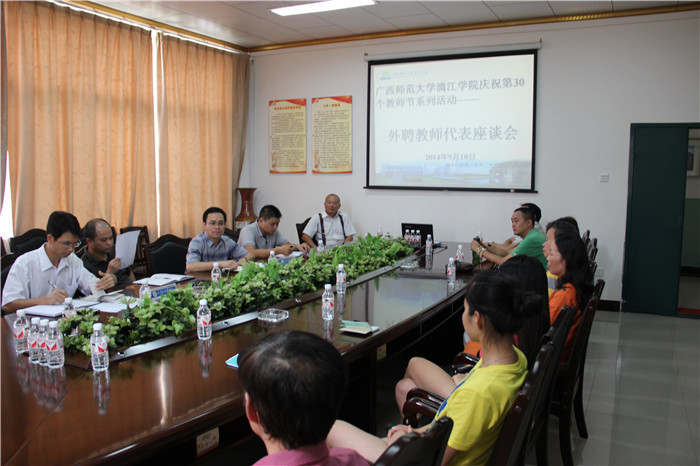 座谈会上,外聘教师们高度评价了学院良好的工作氛围,纷纷表示在漓江学院工作心情非常愉悦,愿意长期来工作。他们就各自承担的各项教学工作畅谈教学体会,认真分析教学中需要解决的问题,并就如何以进一步利用自身社会资源服务学院教学,如何进一步进行实践性教学改革,如何使自身教学适应学院应用技术型人才培养目标等方面谈了自己的经验和未来的设想,同时就如何进一步加强和改进教学管理和学生管理工作向学院提出了许多中肯的意见和建议,也希望学院能更多的关注外聘教师。