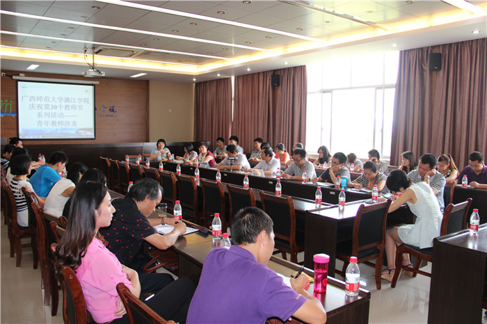 9月10日下午,学院在行政管理中心3301会议室顺利举办庆祝第30个教师节系列活动——青年教师沙龙活动。学院党委书记、常务副院长周世中出席活动,党政事务部、教务与科研管处相关负责人、骨干教师代表及2014年全体新聘教职工40多人参加了活动。