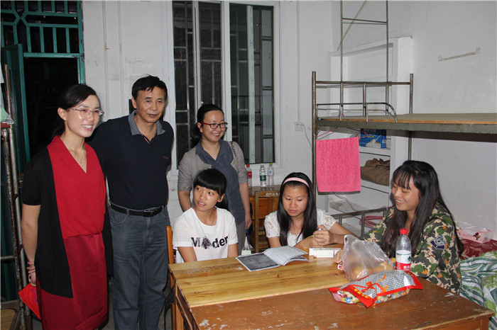 14日晚,在中文系相关负责人的陪同下,学院院长、党委书记周世中对中文系各专业新生进行亲切的问候,询问和了解新生的思想状况及适应情况,解决新生到校后遇到的问题。他关怀着同学们垫被的厚薄,提醒同学们注意气候变化,不要感冒。同时周院长和蔼可亲地表达了自己的欢迎,“我代表漓江学院欢迎你们来此学习,希望尽快适应大学生活,尽快步入大学轨道。生活愉快,健康成长。”