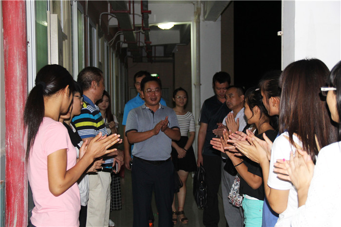 14日晚,学院副书记、副院长邓志平一行分别来到经济政法系和音乐与教育系的学生宿舍,叮嘱新生要注意安全,注意自己的私人财产,并且对新生的饮食卫生安全给予了极大的关注。在慰问音乐与教育系音乐学的男生宿舍的时候,506宿舍的全体同学用吉他弹奏《对面的女孩看过来》,现场掌声雷动,气氛融洽。在轻快的和弦乐中,院领导祝福他们要好好学习专业知识,同时不要忘了文化课的学习,以优异的成绩回报家长和老师。