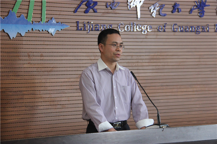 广西师大组织部部长梁启谈宣读干部任免文件。经广西师大校党委研究决定,漓江学院院长、党委书记周世中同志不再担任党委书记,原广西师大美术学院党委书记赖仿同志任漓江学院党委书记,原我院党委副书记、副院长韦冬同志任广西师大纪委副书记、监察处处长,不再担任党委副书记。