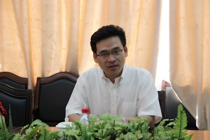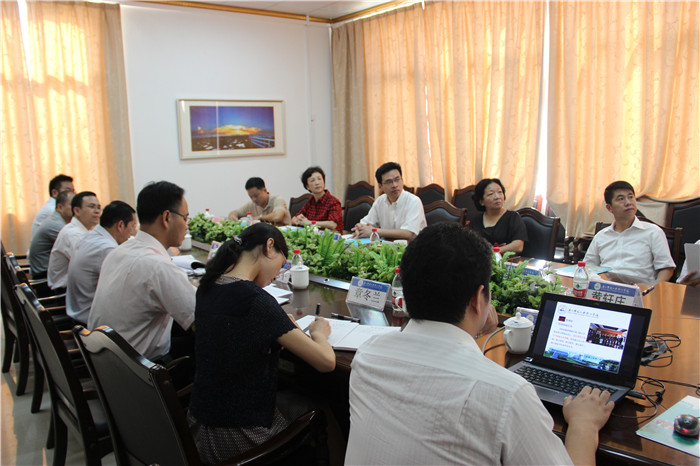 随后,秦斌厅长一行与学院领导在该校行政管理中心3208会议室进行座谈。学院党委书记、常务副院长周世中从学院的基本情况、办学成绩取得的原因、目前的工作重点以及存在的问题等四个方面的内容进行了汇报。