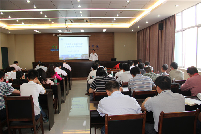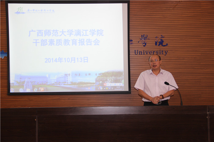 10月13日下午,我院在行政管理中心3301会议室召开干部素质教育报告会暨中层干部工作会,学院领导蔡昌卓、周世中、邓志平、刘林海、章冬兰出席会议,全体中层管理干部参加了会议。会议由学院党委副书记、副院长邓志平主持。