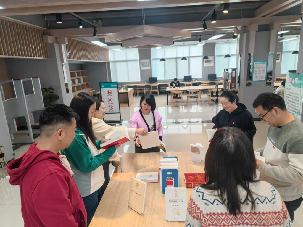 为深入贯彻习近平总书记关于新时代廉洁文化建设重要论述,持续深化新时代廉洁文化建设,充分发挥廉洁文化的教育、示范、熏陶作用,切实增强廉洁从政、廉洁用权、廉洁修身、廉洁齐家的思想,1127校办公室党支部开展党旗领航·倡廉洁 践使命主题组织党日活动活动以现场教学为主,参观了校图书馆三楼参观了廉洁文化主题书展以及嘉善楼一楼艺术创意展厅参观廉洁作品展。
