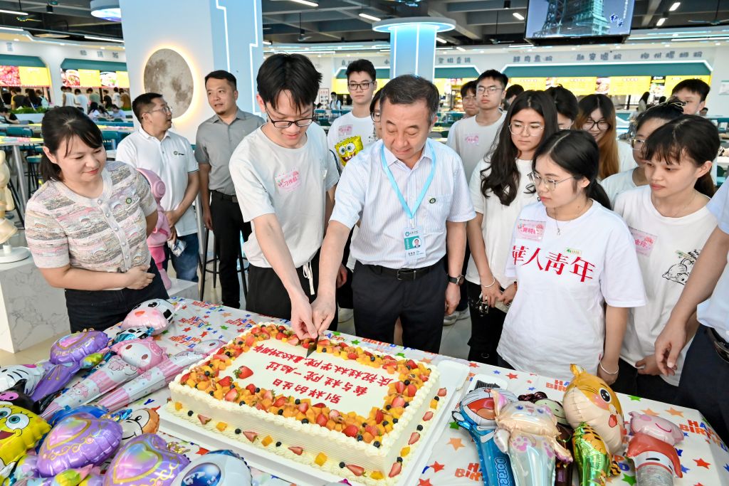 活动在切蛋糕仪式中开始。吴郭泉校长与师生代表共同切分生日蛋糕,现场气氛温馨融洽。午餐期间,校长与师生们亲切交流,关心询问同学们的学习生活情况,分享自己的求学经历,勉励大家勤奋学习、追求进步。
