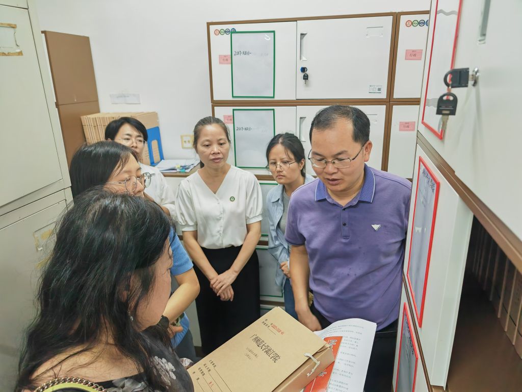 刘朝文馆长与桂林学院档案馆工作人员交流档案业务