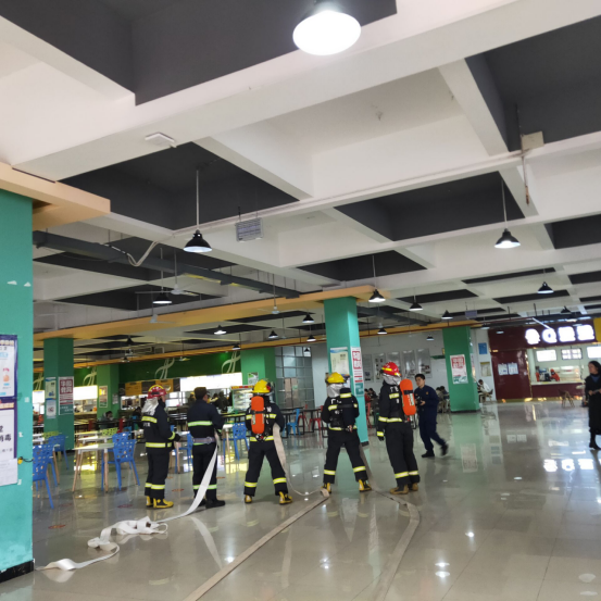 检查结束后,在消防大队教导员的指导下,在食堂二楼进行了消防器材实操及救生演习。消防官兵向我校师生实际演示了当危险来临时如何进行自救与互救,对水枪水带的快速接装及操作方法进行了现场演示,并让我校安保人员上场进行消防水枪操作体验。