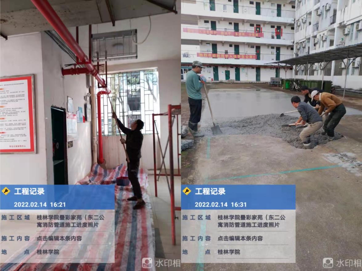 治安综合办对学校东二东三学生公寓消防管道施工改造。