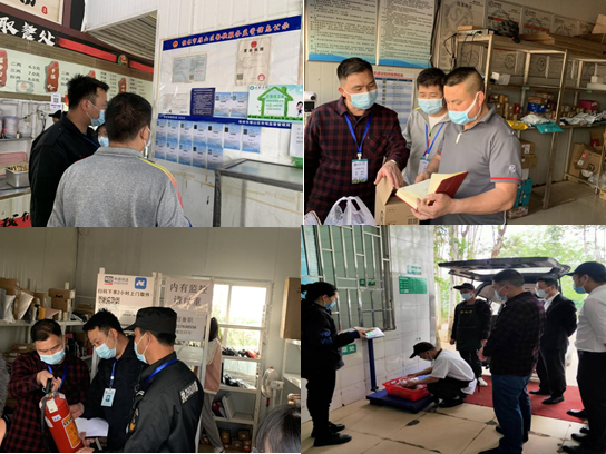 为贯彻落实《国务院安委会办公室应急管理部关于认真贯彻落实习近平总书记重要指示精神举一反三坚决遏制重特大事故的通知》(安委办明电(2022)5号)文件的要求,加强学校安全管理,确保广大师生欢度平安和谐的“五一”假期, 4月20日,后勤保卫处副处长秦家荣带领后勤食管干事谭健平、消防干事秦鑫和安保人员对学校食堂、商铺进行安全检查。