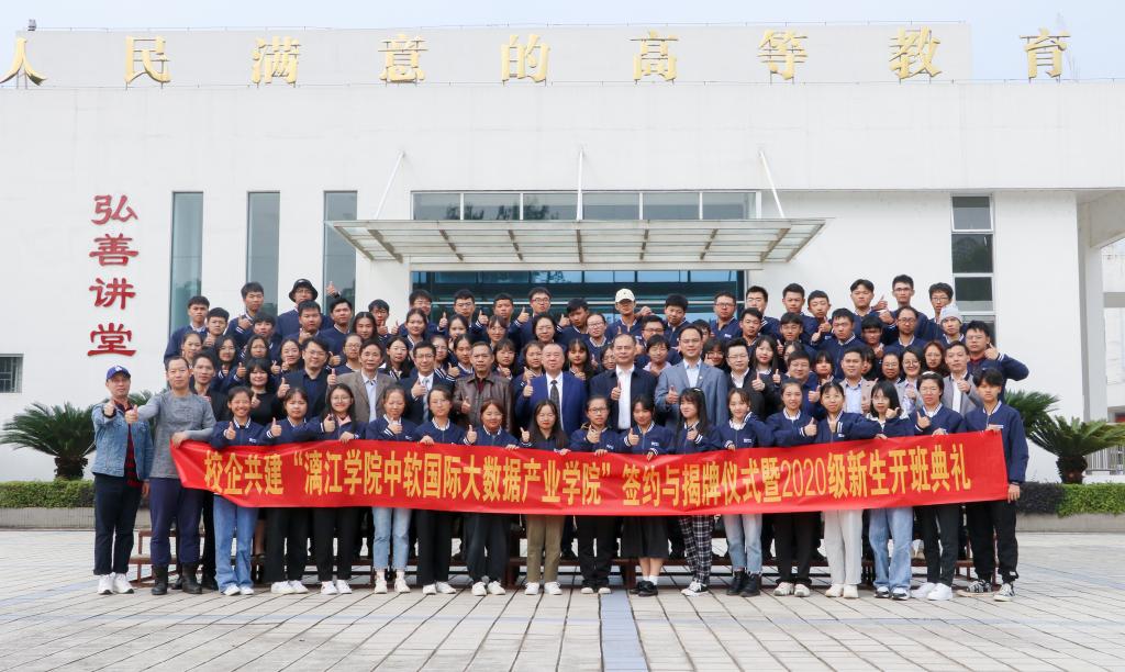 图:校领导、中软教育集团领导与2020级数据科学与大数据专业全体师生合影