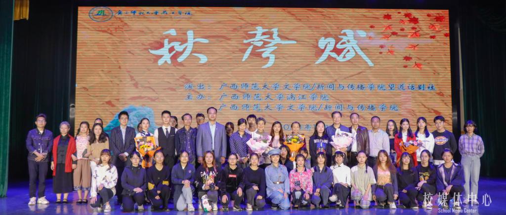 11月1日晚,广西师范大学文学院/新闻与传播学院望道话剧社经典话剧作品《秋声赋》在我校弘善讲堂上演。校领导杨树喆、邓志平出席活动,与我校师生代表等500余人共同观看了精彩演出。