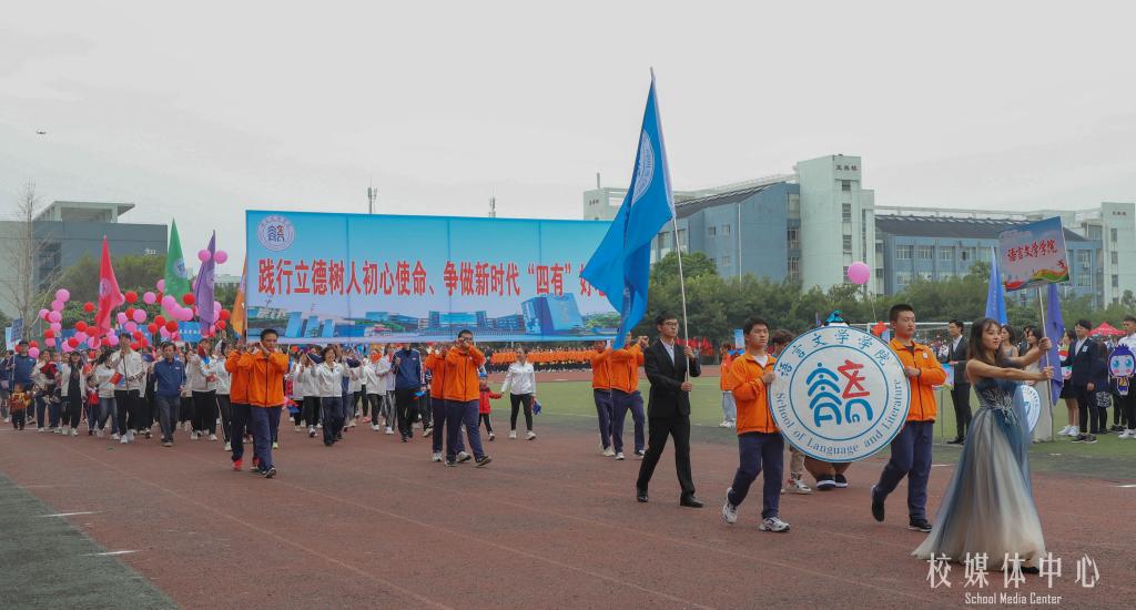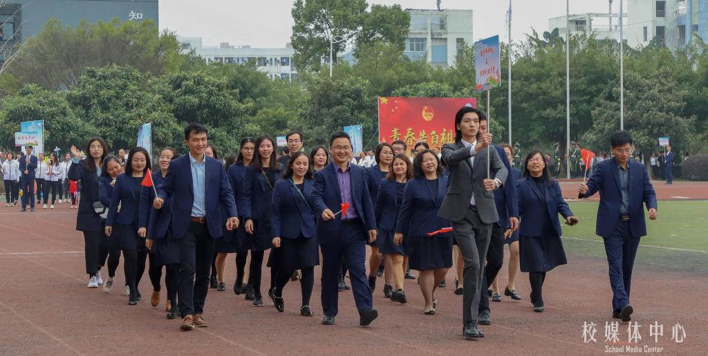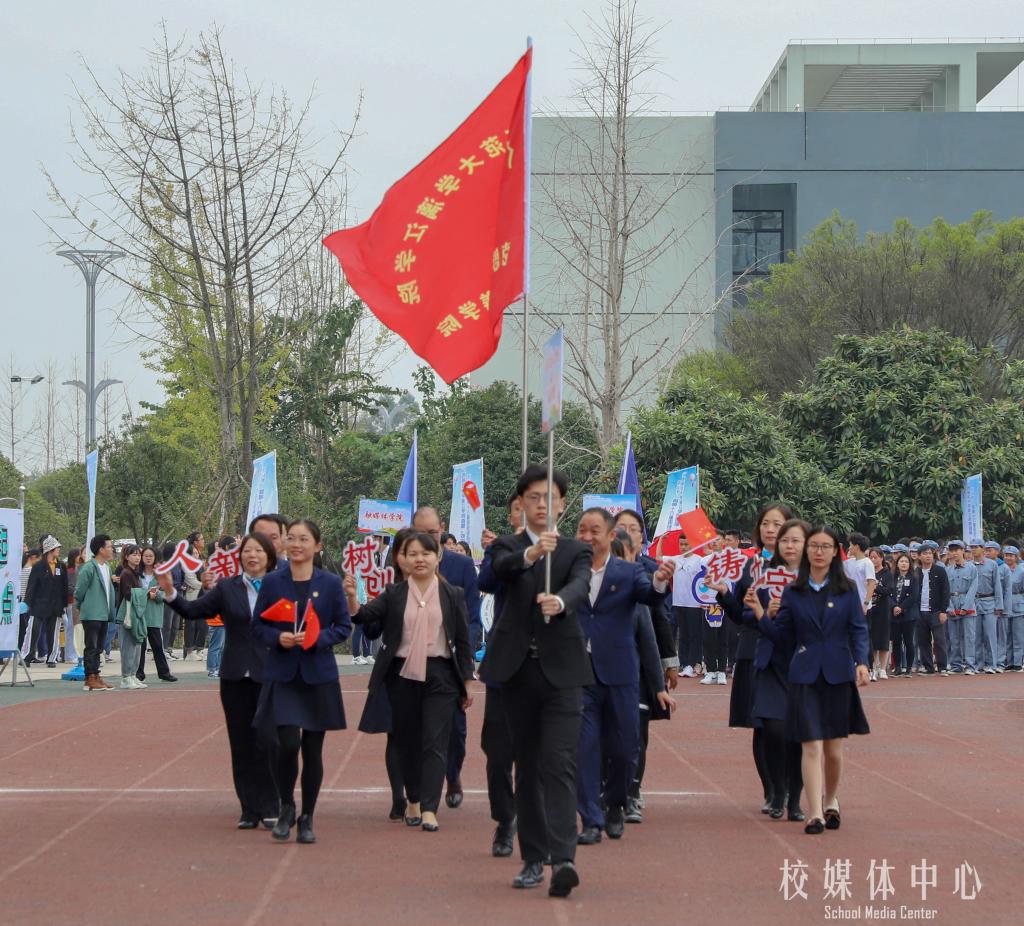 11月5日上午,我校首届校园体育文化节暨第十八届田径运动会开幕,田径场上掌声雷动、热闹非凡。在开幕式上,各方队、各代表队身着盛装、精神抖擞,步伐铿锵,伴着慷慨激扬的《运动员进行曲》依次进入运动场,并分别带来了精彩的表演,赢得了现场观众阵阵掌声和欢呼声。