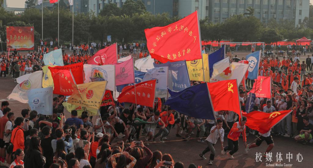 图:闭幕式各学生组织、二级学院接力跑旗活动