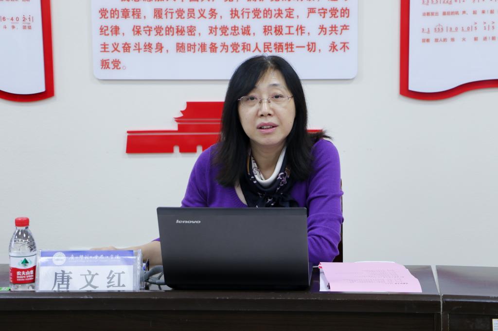 图:校党委书记唐文红汇报学校思政课建设工作情况