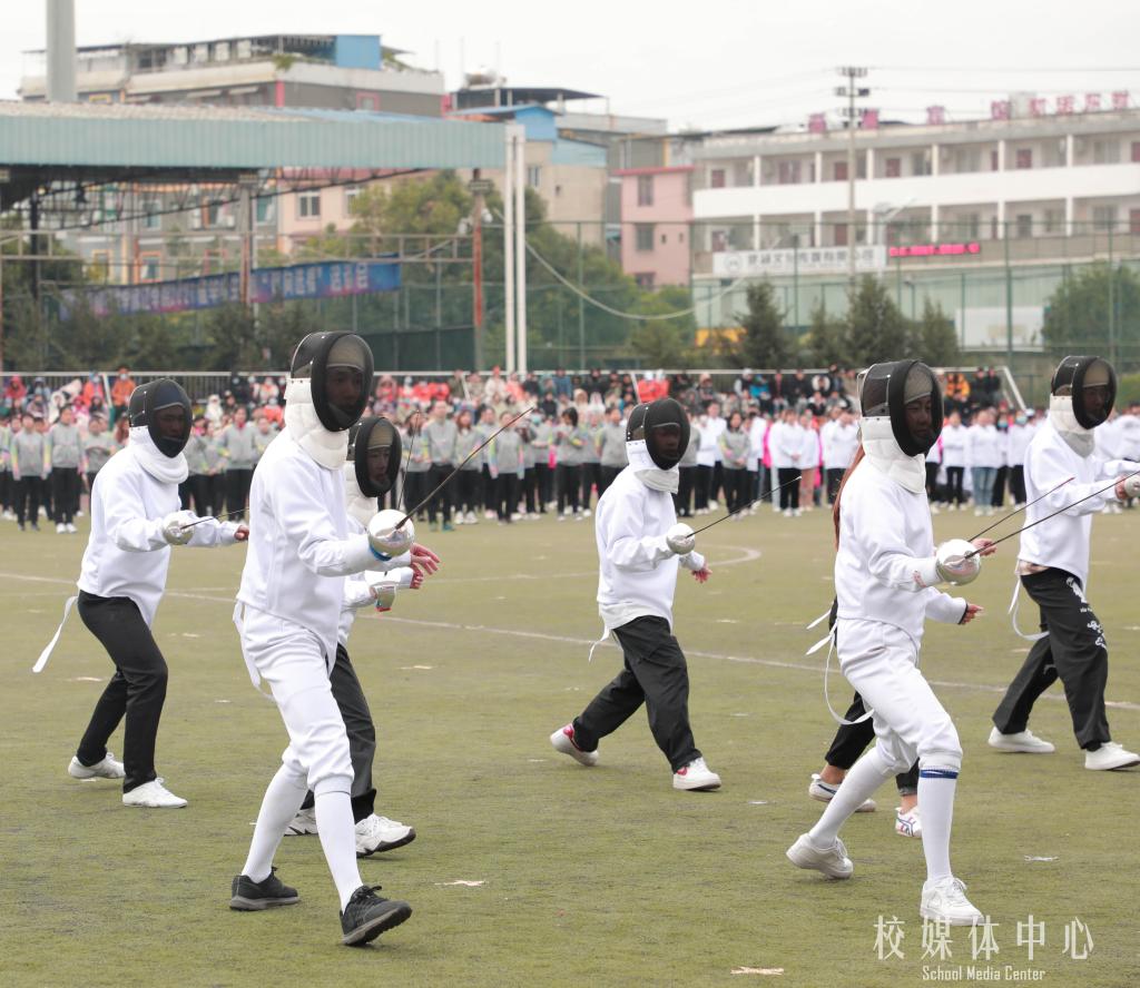 闭幕式上,教育与音乐学院120名学生表演了青春舞《我们都是追梦人》,伴随着动感的旋律,同学们动作整齐,充满活力,展现了漓院学子蓬勃向上,积极进取的青春风采。体育与健康学院学生表演了击剑展示。随后,来自我校550名师生代表带来健身气功八段锦的精彩表演。