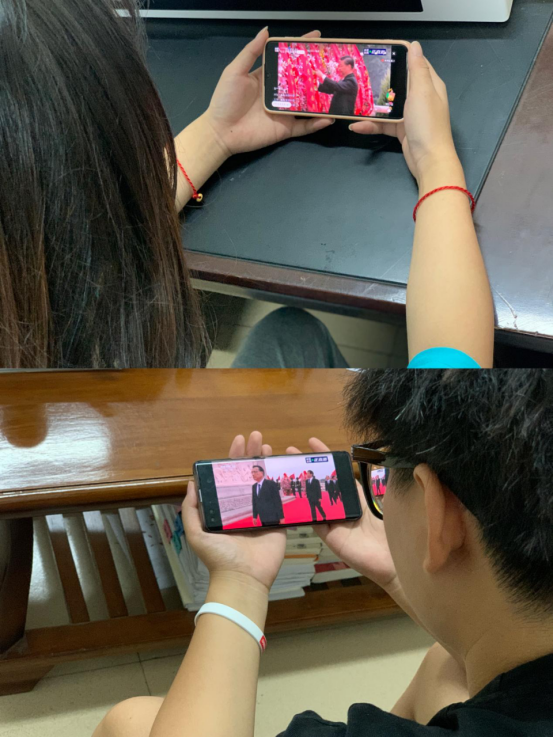 图为我校团学干部通过网络直播观看烈士纪念日向人民英雄敬献花篮仪式