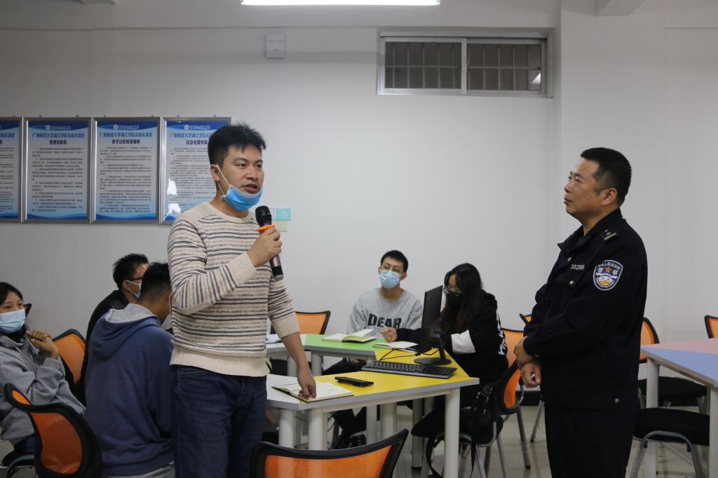 雁山区公安分局政委周长辉总结了雁山公安分局以“党建引领 金盾护校”党建品牌为抓手,与学校联合组建“平安校园临时党支部”以来取得的工作举措和成效。说明了推行“校园安全行动学习项目”的目的和意义。他强调,通过行动学习中师生交流的内容结果,可以在多层级、各组织中产生相互促进作用,让广泛的民主讨论,在师生之间产生思想碰撞的火花,使结果能够对现有困难提出问题,使需求问题能够找出合适方案。