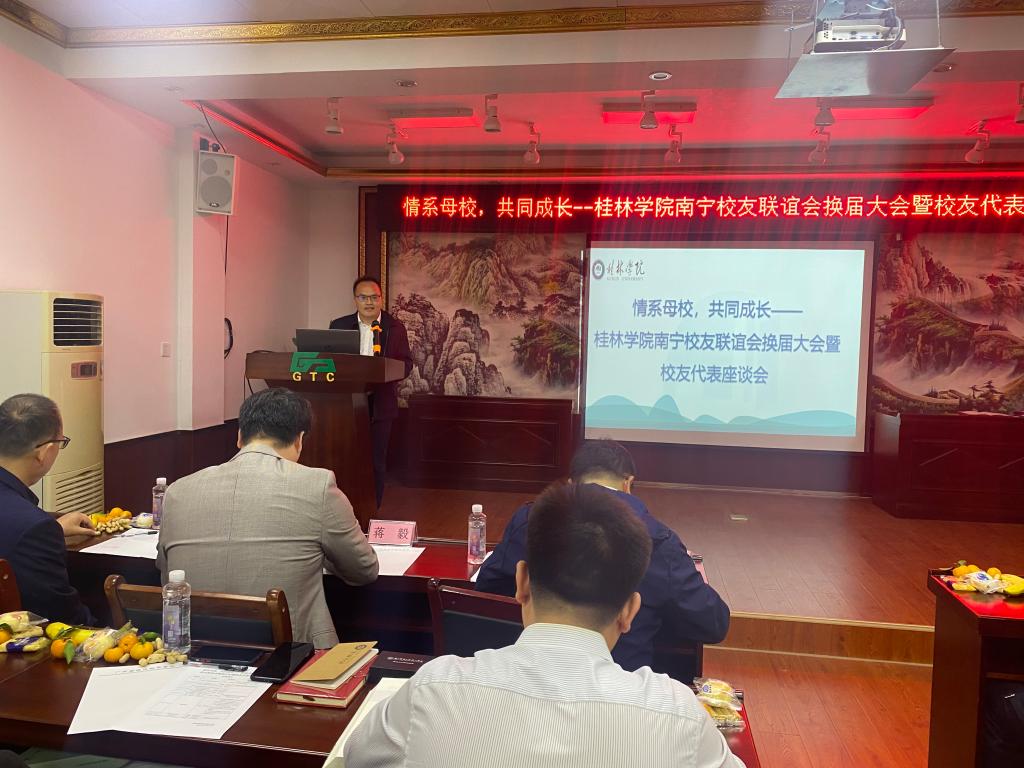 学校副董事长郑善华从学校办学规模、办学特色、内涵发展及转设为桂林学院的新征程方面介绍了学校办学20年来建设发展情况,他充分肯定在南宁校友在各自岗位上取得的成绩和为南宁各项事业做出的贡献。郑善华希望,南宁校友联谊会校友能够成为传递桂院温度、饱含至善情怀、深受校友喜爱的精神家园,他表示,校友是学校对外的一张靓丽名片,学校的发展离不开广大校友的大力支持,希望校友们持续关注、关心母校的发展,为母校发展建言献策,并诚挚邀请校友在母校建校20周年暨桂林学院揭牌之际相约桂院、共商发展。