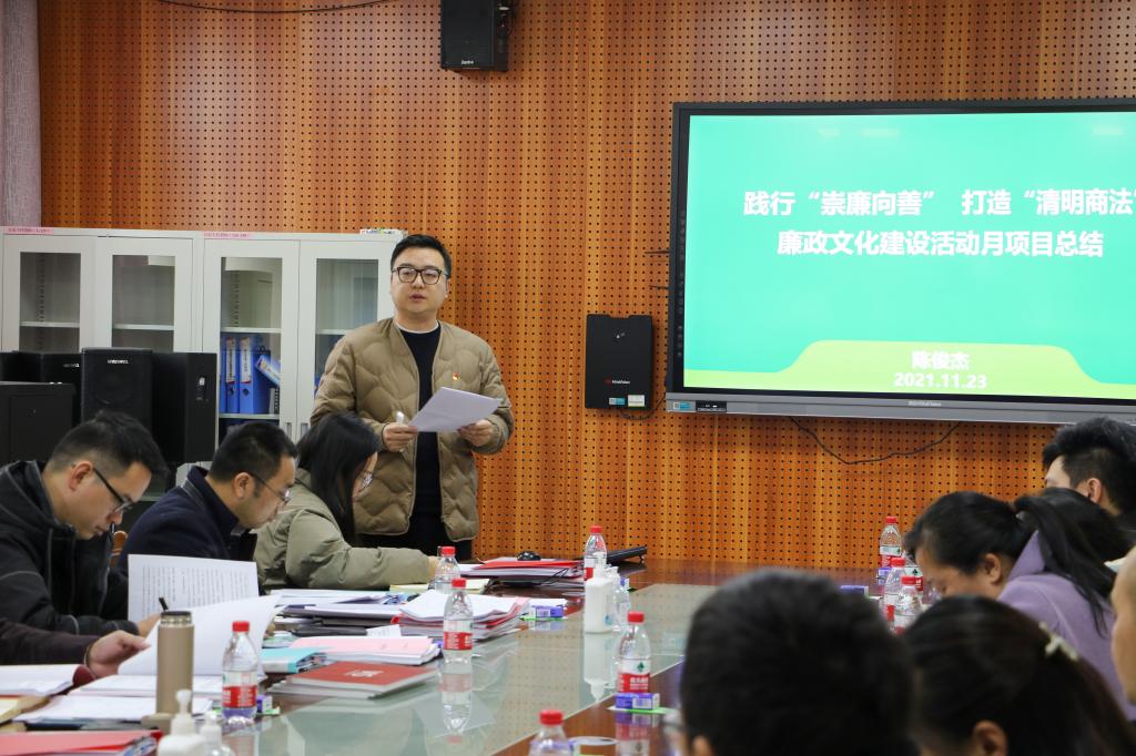11月23日下午,学校纪委在知善楼8312会议室组织召开首届“崇廉向善”廉洁文化“一院一品”培育项目现场考评,校党委副书记、纪委书记、副校长邓志平,全体纪委委员,二级学院党总支书记及纪检委员参加会议。