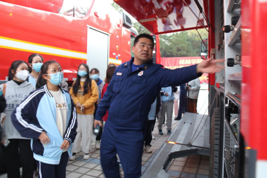 同学们参观消防车和消防设施