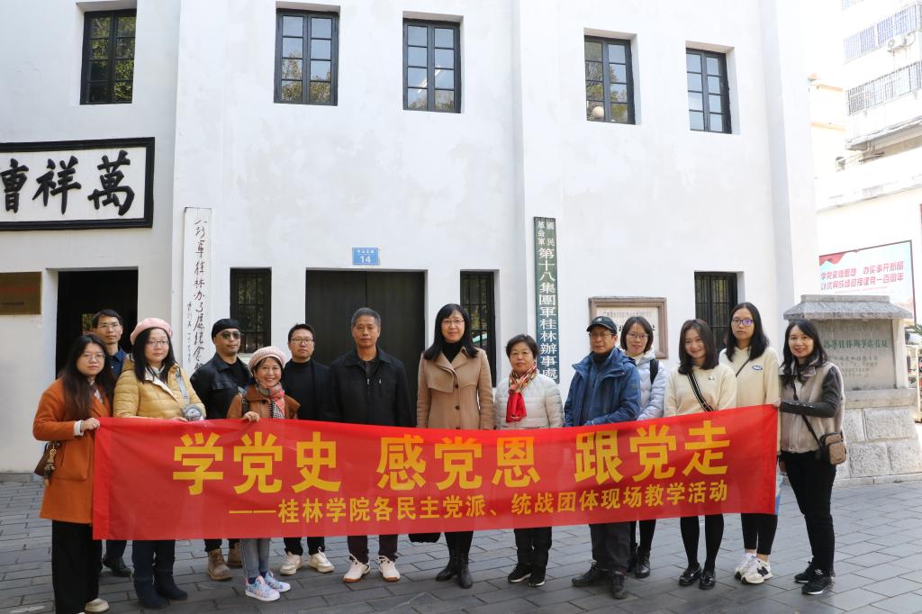 12月2日上午,校党委书记唐文红与我校民主党派、统战团体代表赴八路军桂林办事处纪念馆、美国飞虎队桂林遗址公园开展“学党史感党恩 跟党走”主题现场教学活动,学习贯彻党的十九届六中全会精神,感受革命抗战文化,凝聚爱国热情。