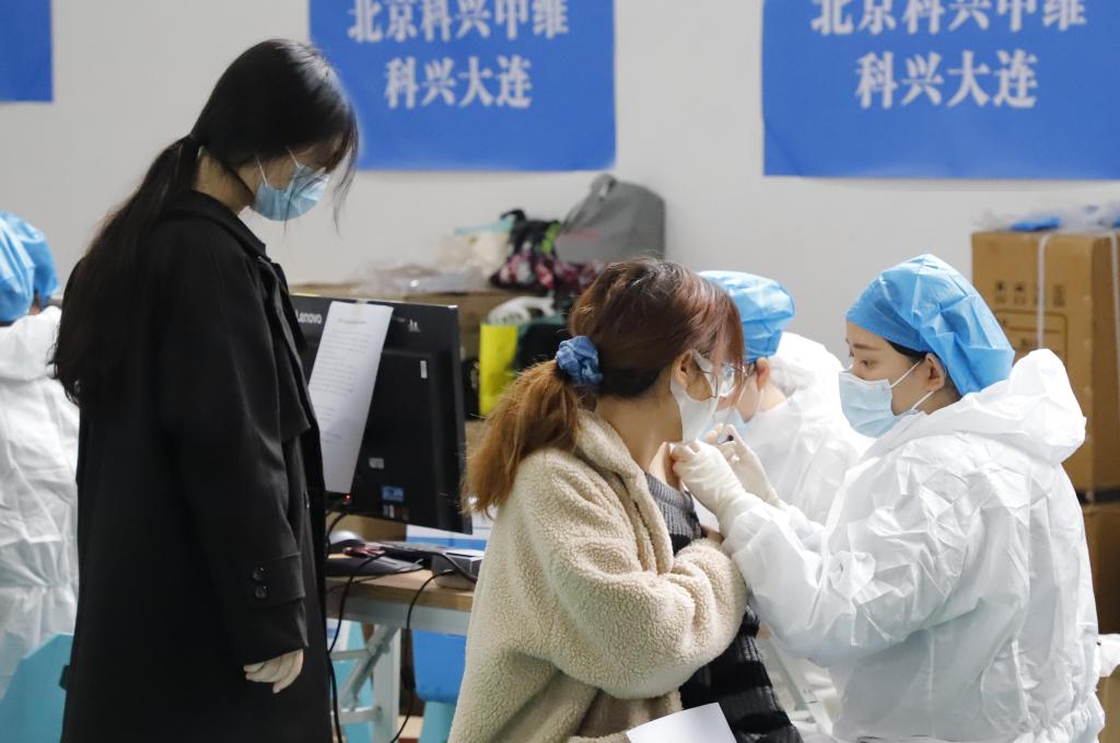 师生员工在对应的基础针生产厂商接种区域接种