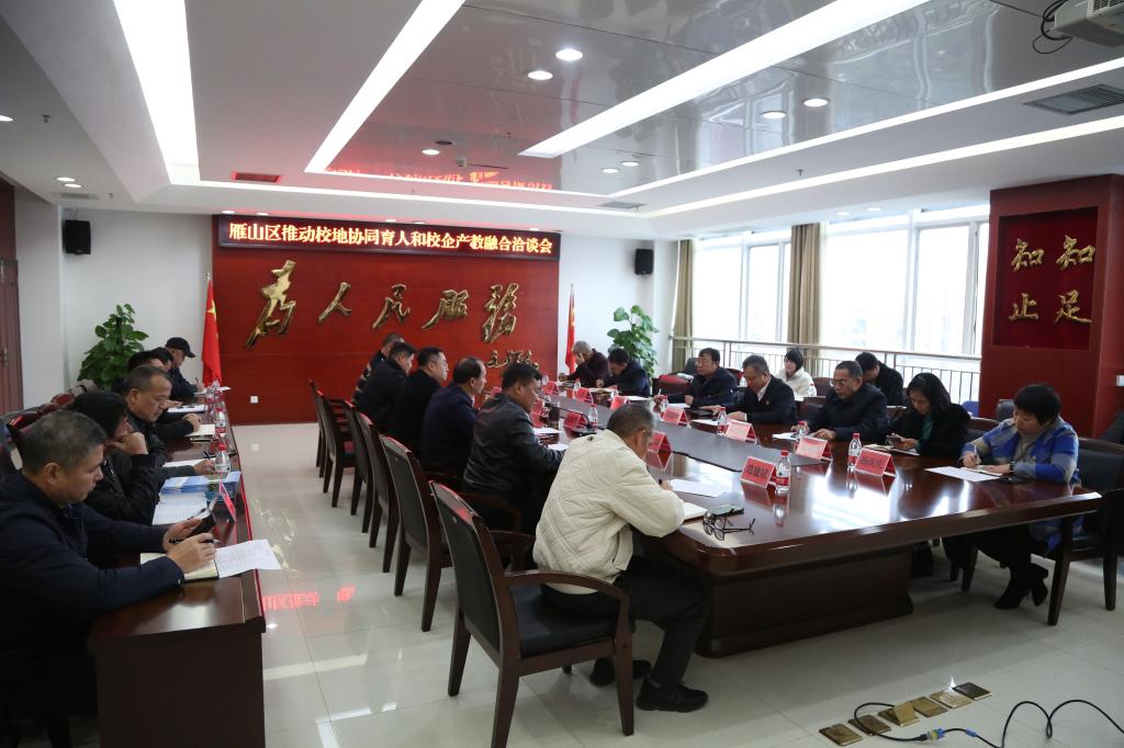 12月20日,董事长周道林、校长杨树喆、校党组织负责人唐文红率队拜会雁山区委区政府,与中共雁山区委书记莫振华、雁山区区长潘军华座谈,就进一步加强校地深度融合、协同育人、实现共赢等方面进行深入交流。