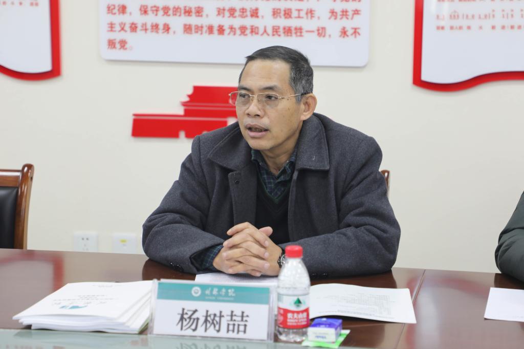 1月11日下午,以自治区政府督学陈杰教授为组长的广西民办高校重点支持建设专业验收工作专家组一行莅临我校,对我校财务管理、数学与应用数学、金融学、法学等四个广西民办高校重点支持建设专业(以下简称“重点专业”)进行现场验收。校长杨树喆、副校长杨庆庆,上述重点专业负责人及所在二级学院院长、人力资源部、学生事务部、财务资产处、后勤保卫处、实验教学与网络信息中心、图书馆、教学科研处主要负责人师生代表参加了当天的验收工作。杨树喆在验收汇报会上致欢迎辞。