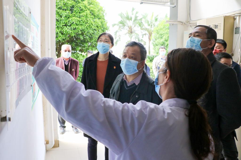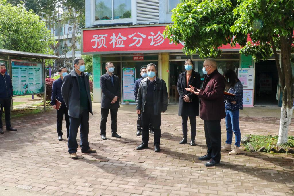 在学校卫生所,周道林一行听取了相关负责人对发热学生应急处置和隔离观察区设置的情况汇报,并查验了学校防疫物资储备情况。检查组指出,要加强校内重点场所防控,定期通风换气,做好环境监测、卫生清洁和消毒消杀。