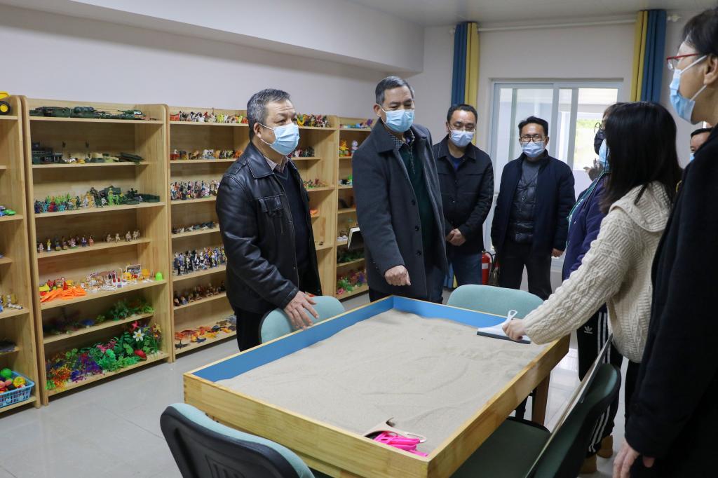 在大学生心理健康教育中心,周道林一行听取了相关负责人关于师资配备、心理咨询接待人数和软硬件设施配备的情况汇报。检查组强调,当前既要严格落实疫情防控措施,又要关心关注师生思想动态和心理状况,加强对隔离师生员工的人文关怀,积极疏导心理压力,强化心理支持和援助。