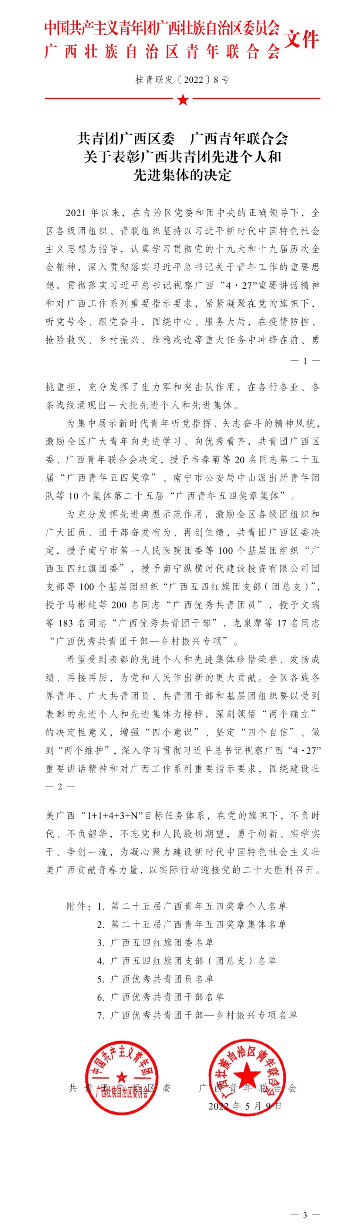 近日,共青团广西区委、广西青年联合会印发《共青团广西区委 广西青年联合会关于表彰广西共青团先进个人和先进集体的决定》的文件(桂青联团〔2022〕8号),我校团委荣获“广西五四红旗团委”称号。