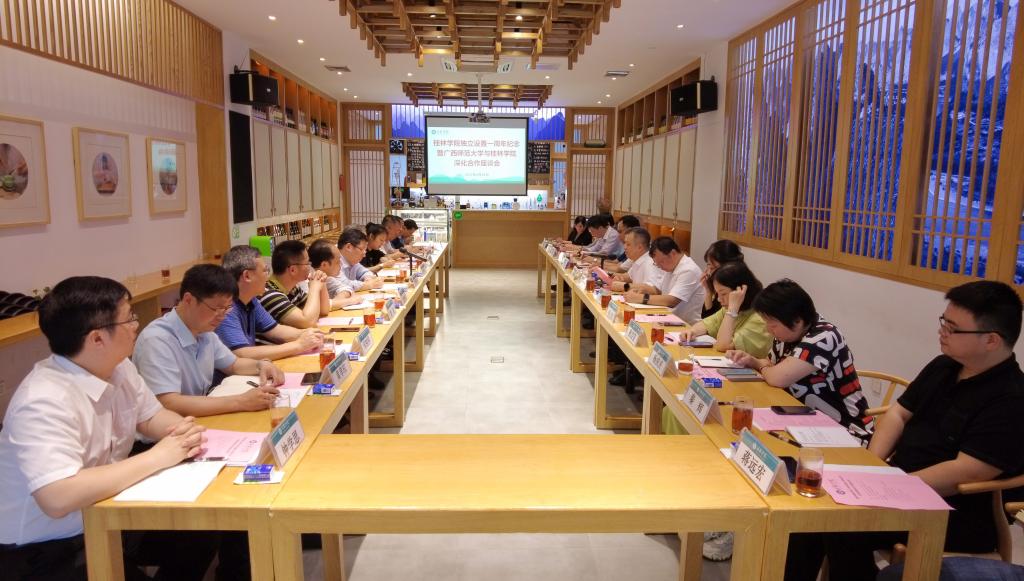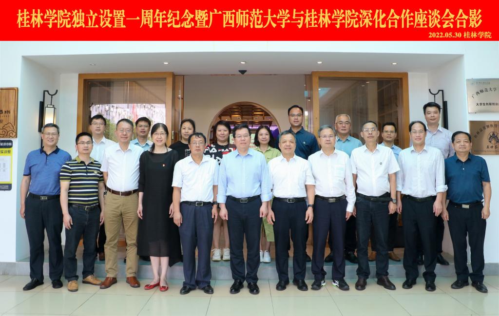 5月30日下午,我校独立设置一周年纪念暨桂林学院与广西师范大学深化合作座谈会在乐善楼举行。校董事会及校领导周道林、郑善华、杨树喆、唐文红、邓志平、祝芸芸、刘文革、杨庆庆,广西师范大学校长贺祖斌、副校长苏桂发出席座谈会。