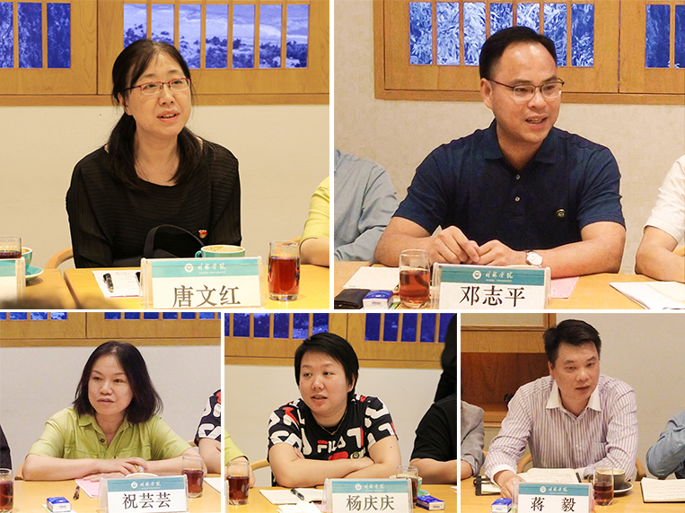 我校校长助理蒋毅、秦辉,党政事务部、人力资源部、学生事务部、教学科研处、合作发展处等部门主要负责人,以及广西师范大学校长办公室、发展规划处、人事处、教务处、研究生院、科技处、社会科学处、校友工作办公室、基础教育管理办公室等部门主要负责人参加本次座谈会,并踊跃发言。