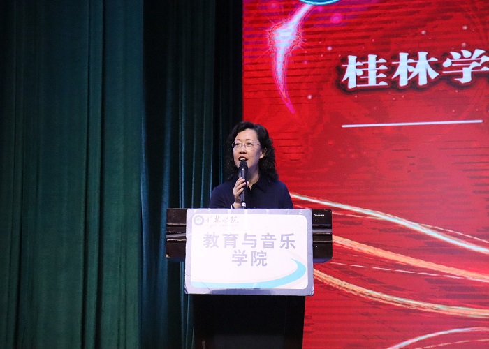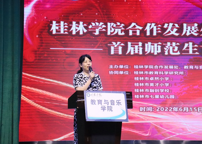 桂林市教育科学研究所教研员、中学高级教师董瑜,七星区教育局副局长冯嘉莉、雁山区教育局副局长王寿元、卓然小学校长叶琴珍分别从“桂林市教师招聘政策及备考指南”“幼小衔接的理论与实践”“乡村振兴背景下教师的成长”“双减政策下的小学教育改革”几个方面向现场的师生进行报告,这些主题发言,紧扣国家政策、紧密联系社会现实,包含专家教师们的探索与思考,给了大家很好的启发。舞台上,教育与音乐学院学前教育专业、小学教育专业、音乐学专业、舞蹈学专业分别进行了专业风采和专业技能展示;在艺术创意展示中心,来宾们兴致勃勃的参观了学前教育专业、小学教育专业的美术、书法作品及课程思政作品展,琳琅满目的手工刻纸、书法、布书、儿童绘本、布艺、卡通画、简笔画等诸多作品,令来宾们目不暇接,纷纷点赞。