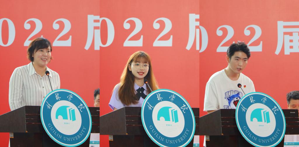 教师代表邱晓玲、在校生代表韩超帆先后发言,表达对毕业生的衷心祝愿和对未来前程的美好期许。毕业生代表许锐思发言,回顾分享了自我成长和蜕变、思考和收获。