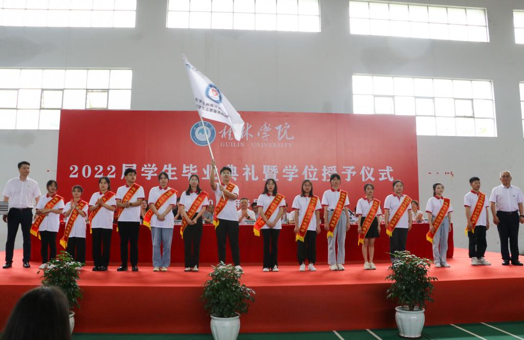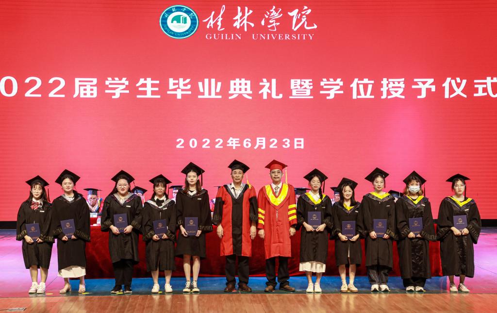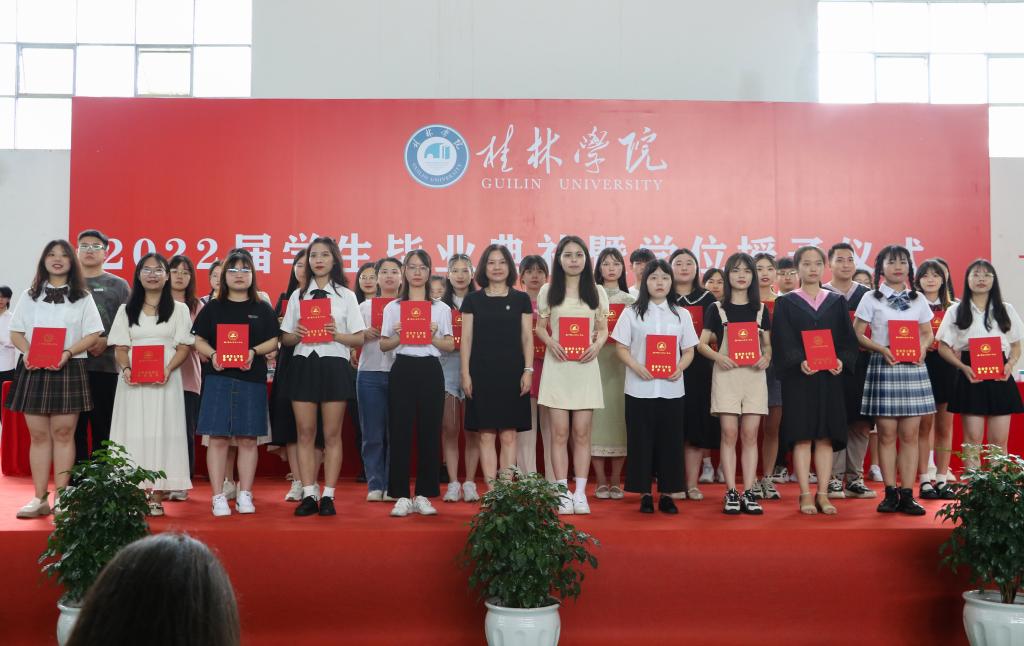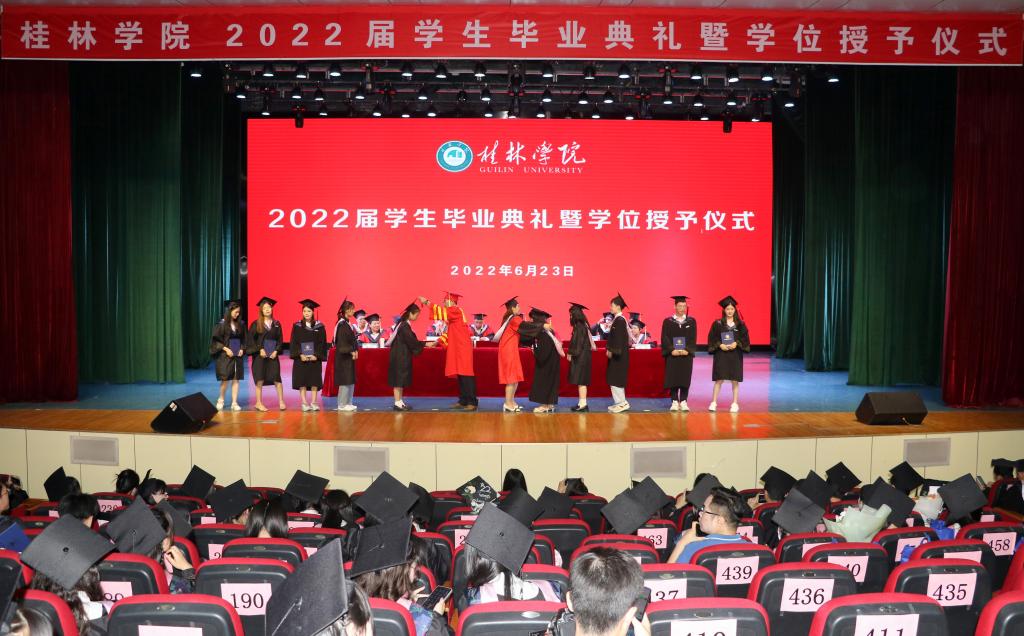 “在山水甲天下的地方,桂林学院令人向往……”“在大雁腾飞的地方,桂林学院美名远扬……”在最后一次全场奏唱《造就人才的殿堂》的悠扬校歌声中,学位授予仪式圆满结束。