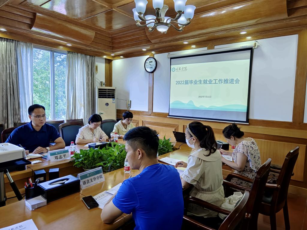 7月31日上午,我校召开2022届毕业生就业工作推进会。校纪委负责人、副校长邓志平出席会议,语言文学学院领导班子、毕业班辅导员、就业创业中心全体人员参加会议。