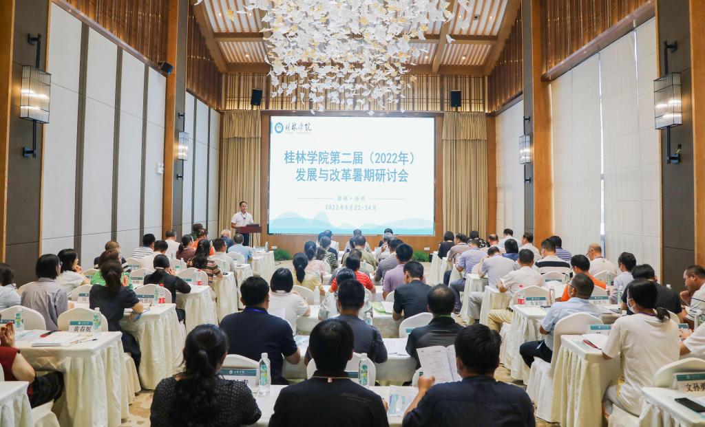 8月22日,桂林学院第二届发展与改革暑期研讨会开幕式在全州县举行。会议的主题和任务是:高举习近平新时代中国特色社会主义思想伟大旗帜,深入学习贯彻习近平总书记关于教育的重要论述精神,围绕践行“至善”办学理念,全面总结学校独立设置以来的办学成效,分析研判学校当前面临的形势,部署2022-2023学年及今后一段时期的工作,着力打造六个“至善”,不断提升整体办学能力和水平,为顺利通过教育部“转设学校过渡期考核”和本科教学工作合格评估夯实基础,以优异成绩迎接党的二十大胜利召开。