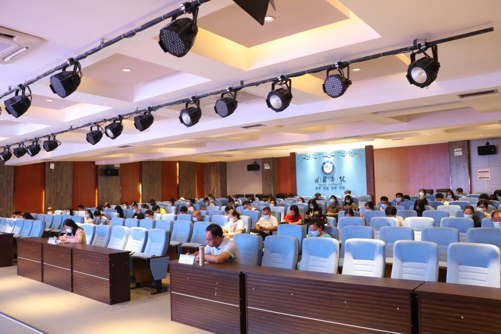 我校在至善讲堂设立视频分会场。校领导唐文红、邓志平、杨庆庆出席,党政事务部、人力资源部、教学科研处、学生事务部/校团委班子代表、各二级学院班子代表、专任教师代表、辅导员代表、师范生代表约80人参加会议。