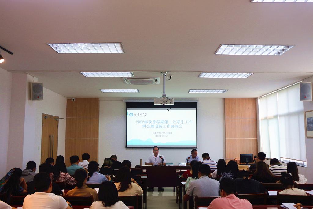 9月15日下午,学校在图书馆C馆报告厅召开2022年秋季学期第二次学生工作例会暨迎新工作协调会。校纪委负责人、副校长邓志平,各职能教辅部门负责人、各二级学院分管学生工作副书记、2022级新生辅导员及学生事务部相关人员参加会议。