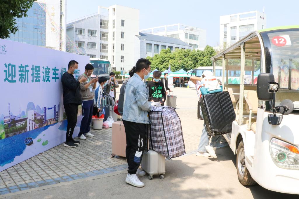 学校在校门外设立新生迎候与入校提交核验点,新生逐一完成测温、新生身份核验、健康打卡情况、健康码、行程码及48小时核酸阴性证明查验等工作后,安全有序进入校园。同时,在校内设立各二级学院行李暂存服务、核酸检测采样服务点、西一公寓和南溪家苑(23-26栋)方向接驳服务点、杉胡家苑和8-10栋方向接驳服务点、西一公寓新生入住服务点、西二、东二和东四公寓新生入住服务点、南溪家苑新生入住服务店点、杉湖家苑新生入住服务点、木龙家苑(8-10栋)新生公寓入住服务点等9个服务点,由相关职能部门领导、党总支副书记、专职辅导员和部分师生代表组成的精悍志愿者队伍,为新生提供热情服务。